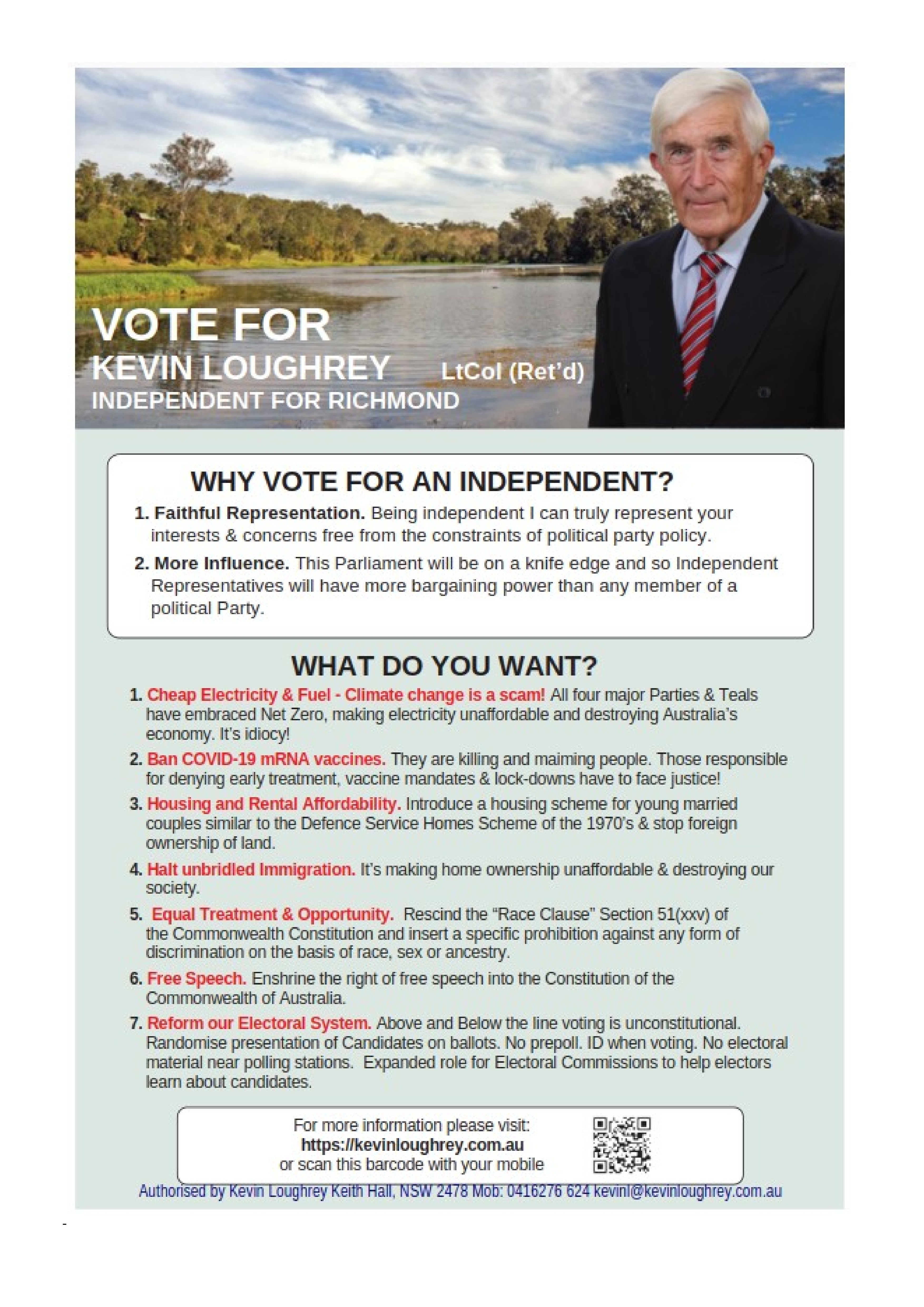 Welcome to Kevin Loughrey's Website Co-Founder of "Reforming Our Australian Democracy" To learn more