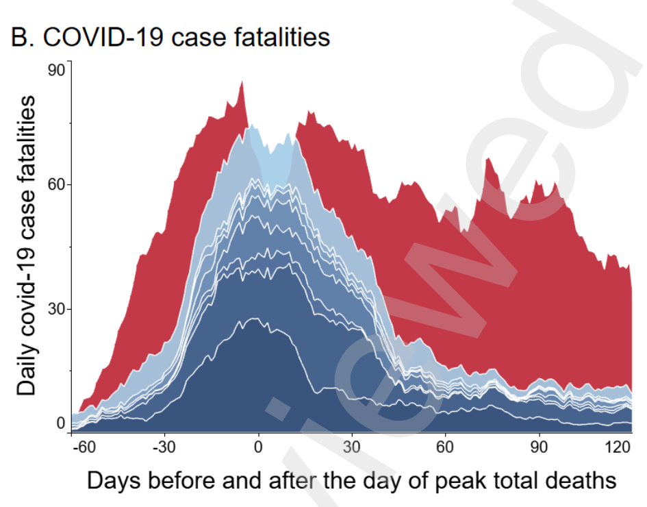 3. Initial Exaggeration of Deaths from COVID in Sweden Initially there was an orchestrated campaign to exaggerate the danger that COVID-19 posed. This was most famously the result of a computer model developed by a Public Health Professional, Professor Neil Ferguson, in Britain who had a history of getting things badly wrong. Professor Ferguson led the COVID-19 modelling team at Imperial College in London. He resigned May 5 from his government advisory role as a consequence of scandal and the obvious fact his predictions were grossly inaccurate. Ferguson led the Imperial College team that designed the computer model that, among others, had been used to justify the stay-at-home orders in England as well as in the United States. Most sensible people have now come to the conclusion the model was so highly flawed it never should have been relied upon for policy decisions to begin with. However this exaggeration and fear-mongering was not limited to just Britain. It seemed to permeate throughout the world as if centrally organised by the Chinese Communist Party simply, in this case, harnessing the avarice of the Pharmaceutical Industry and gigantic asset managers such as Blackrock and Vanguard who stood to make billions from instilling panic worldwide. In the graphic opposite, is a plot of the deaths that were ascribed to COVID-19. The blue histogram shows the deaths that were initially blamed on COVID. The red plot represents the actual deaths determined through postmortem examination of the death certificates. (I personally rang the Östergötland Health Authority to verify the authenticity of this graph and its data.) This graph reveals a 7 times exaggeration of the lethality of COVID-19. . |