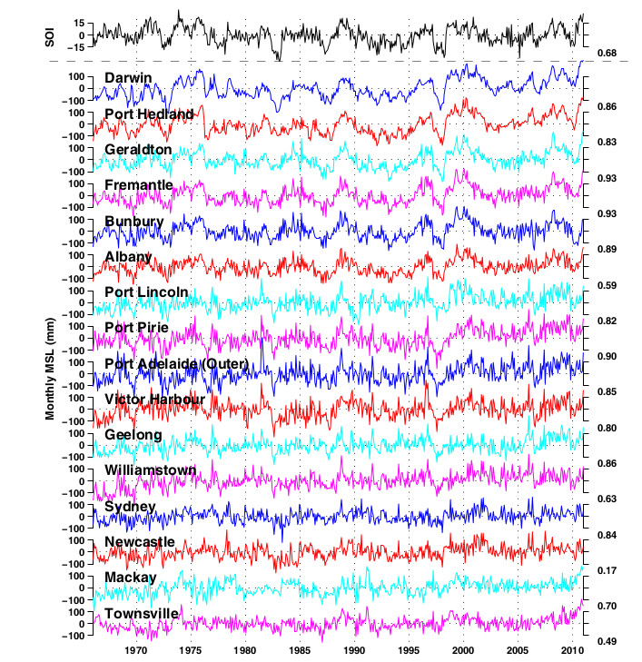Historical Tide Gauge Record 1965-2012. From the tide gauge record taken from tide gauges around Australia, it can be seen that the sea level is not rising precipitately. People who blame recent flooding on rising sea levels are simply ill-informed.