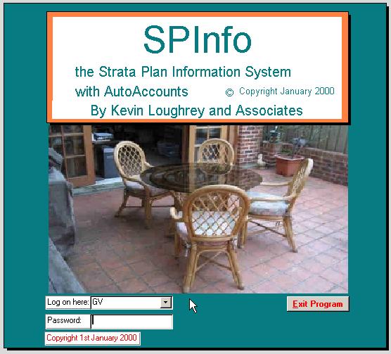 Peter Bryant and Lloyd Martin.  The Strata Plan Information Application was first written by Mr Lloyd Martin at the direction of Mr Peter Bryant the owner of Bryant Strata Management.  It's purpose was to provide general information on Strata Plans.  Subsequently another application was written to manage the issue of work orders for repairs and maintenance of Strata Plans.  Lloyd also wrote an application to assist in the management of Insurance Policies and Insurance Claims related to Strata Management.  The situation became untidy in that the Strata Plan information application contained data about owners, executive committees, lots, etc and the Work orders and Insurance modules had to contain the same or similar information with the addition of contractors, insurance companies and insurance brokers.  The girls came to call the modules Work Orders, Insurance and SPInfo; SPInfo standing for Strata Plan Information.  This latter name was the one that stuck when eventually all of these modules were combined into one.